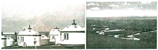4、单选题 蒙古包是蒙古等民族的传统民居。下图示意锡林郭勒(约116°E,44°N)草原上的蒙古包及某河的景观图。读图回答下列小题。
