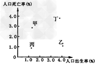 4、单选题 读右图“人口出生率和死亡率统计”图甲、乙、丙、丁分别表示不同的国家。读图完成1—2题。