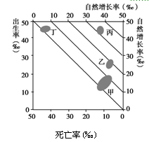3、单选题 图中甲、乙、丙、丁代表不同区域的人口增长模式。读图完成问题。