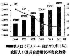 材料一:我国人口及其自然增长率变化趋势图