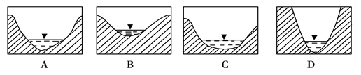 小题2:若图中河流①处表示地势起伏大的山区,河流上游①处的剖面图可能是( )