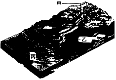 小题2:本题考查外力作用与地貌。从甲一乙一丙处,是从河流的上游到下游,由于流速、地势的变化,河流堆积物特点呈现出依次由大到小、由重到轻的变化顺序。故答案为B。