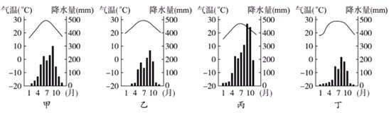 5、单选题 分析图中甲、乙、丙、丁四地气象资料,完成下题。