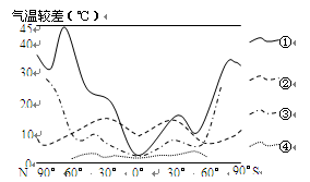 1.四条曲线中纬度差异最大的是2.①、③曲线的差异在南北半球不同,下列有关其原因的说法,正确的是