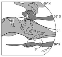 1.关于图中①、②两地季风的说法,不正确的是2.当③地盛行西北季风时