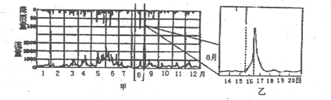 1.从甲图可以看出,该地区暴雨(24小时雨量超过50mm)出现较多。这里暴雨形成的原因主要是2.乙图反映了该河流8月中旬的一次降水与径流的变化过程,最大降水与最大流量之间有一个时间差,近年观测发现这个时间差逐年变大,这可能是由于