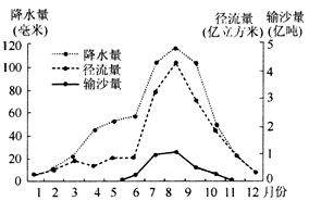4、单选题 图为我国某河流中游水文观测站多年月平均降水量、径流量、输沙量变化图。读图回答问题。