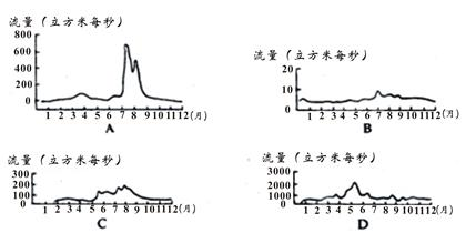 考点:本题以河流径流量图为知识载体,考查学生对河流水不同补给形式的理解、分析能力。