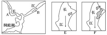3、单选题 读下图,图中A、B为水文观测站,E、F图分别是A水文观测站附近不同季节的河流状况,回答问题。