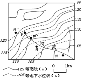 1.该地想通过发展多种经营来发展农村经济,可以选择种植2.图中水井2的水位,离井口最多为3.如果图中河流被污染(P点为污染源),四口水井中,水质受影响最大的是
