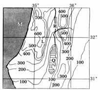 4、单选题 下图为某区域年等降水量线图,读图回答下面4题
