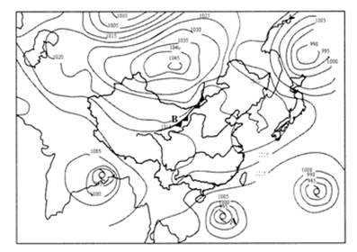(3)阐释在B天气系统的影响下,未来几天内宁夏平原地区将会经历怎样的天气变化过程。(14分)