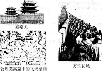 材料二?万里长城、嘉峪关、莫高窟的图片。