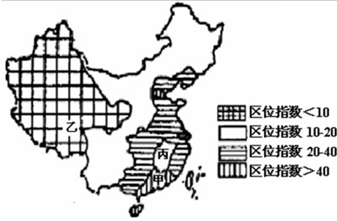 D.丙地区位指数较低,其主要原因是交通闭塞