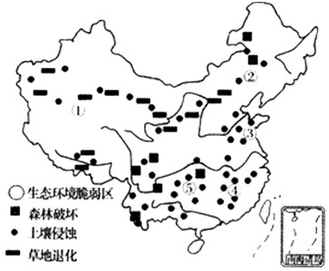 4、综合题  读图,分析回答我国一些地区出现的生态环境问题的原因及其治理措施。