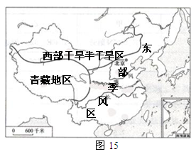3、单选题 三大自然区由于自然要素的差异导致人类活动和自然景观的差异性,读图15,结合所学知识回答问题: