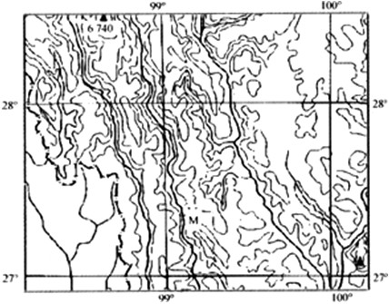 5、综合题 下列等高线图中的等高距为1000米。读图完成下列要求。