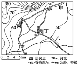 (4)随着人口的增加,丙村要扩建居民点。若只考虑沿着山前公路扩建,试比较说明在丙村东北方向和南偏西方向建设民居条件的差异。