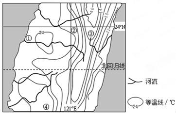 小题2:下列等值线图能正确反映台湾年太阳辐射量分布和某月气温分布情况的分别是