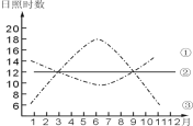 4、单选题 读图,若①、②、③三地均位于平原地区,当三地的日照时数相等时(不考虑天气状况),则: