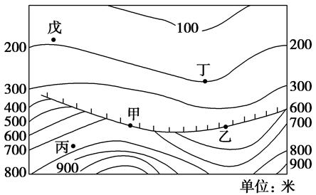 小题1:图中甲地点陡崖崖底的海拔高度和陡崖的相对高度分别可能是