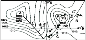 3、单选题 读某地区一月等压线分布,回答下列各题。
