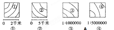 1、单选题 下面四幅图中等高距相同,坡度大小判断正确的是