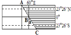 1、若A点的经度为45°E,则A地的昼长为