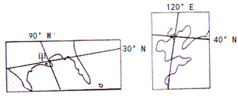 3、单选题 读甲乙两地海陆分布略图,回答下列题。