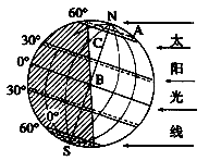 4、单选题 某海洋考察船的航行日志记录:北京时间8时太阳从正东方海面升起;桅杆的影子在正南方时,太阳高度为60°;日落时北京时间为19时45分。据此完成题。