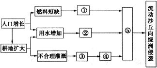 (3)请将下面导致绿洲环境恶化的字母与图中数字代号和内容相搭配。(3分)