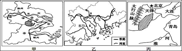 (5)分别写出甲、乙、丙图示地区经济发展的主要限制性因素。 (3分)
