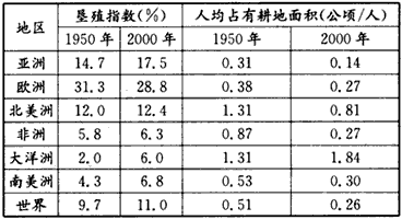 世界及各大洲垦殖指数和人均占有耕地面积变化表