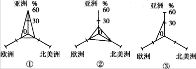 ? 2009年10月16日——世界粮食日,联合国粮农组织和联合国粮食计划署发表报告表明,2009年全球有六分之一的人口挨饿,为1970年以来的最高水平,其中,亚太地区有6.42亿,非洲有3.67亿,拉美有0.53亿。下图为2005年亚洲、欧洲、北美洲(不包括墨西哥)的谷物进、出口量和生产量占世界的比例图。