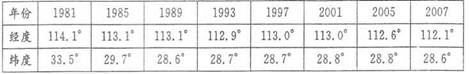 小题2:种植业重心在1981年的坐标是(33.5°N,114.1°E),而在2007年变为(28.6°N,112.1°E)。两个地点相比,后者在前者的西南。