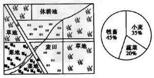 2、单选题 下图为“某地土地利用图(左图)和农业产值构成图(右图)”,该区域的农业地域类型是