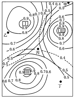 本题解析:读取甲、乙、丙、丁四地的概率值即可排序。