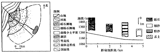 下图示意贺兰山东麓堆积地貌及其纵剖面