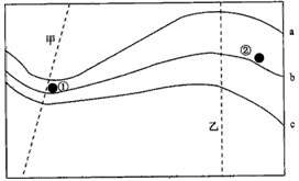 3、若图示为我国西南地区水稻梯田俯视图,且a、b、c为梯田边界,则