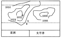 点评:本题难度低,能从图示提取有效信息是解题的关键,抓住图示北半球的陆地和海洋上的气压中心的差异,并结合冬季和夏季海陆热力性质的差异比较分析即可判断。