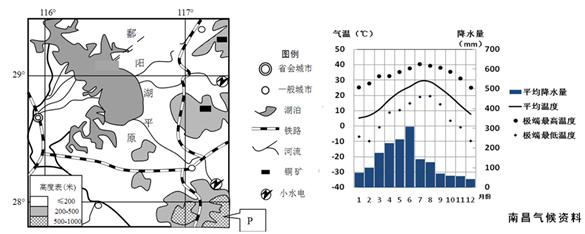 (3)气候要素主要通过热量、降水量、光照、昼夜温差等影响农业。由图中看出,南昌降水季节变化大,多旱涝灾害。冬、春季节气温低,可能会有冻害。七八月份降水少,但气温高、蒸发量大,所以出现伏旱天气。