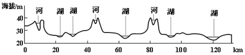 3、下图示意我国某地段的地形剖面,该地段最有可能属于