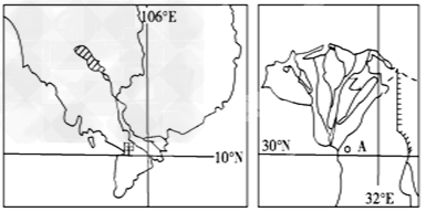 3、单选题 以下为世界两条大河的三角洲略图,据此完成1—2题。