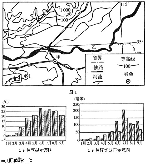 (1)图1中甲城市名称是______。该城市所在地区重要的经济作物和粮食作物分别是______、______。