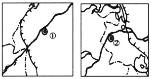 4、单选题 读我国两省会城市位置图,回答1~2题。