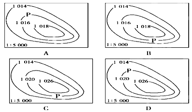 2、单选题 等压线是某一水平面上气压相同各点的连线。下列四幅等压线图中,P点所在位置风力最大的是( )