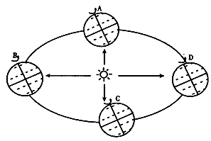 (3)地球公转到_________、_________点时,全球昼夜平分。