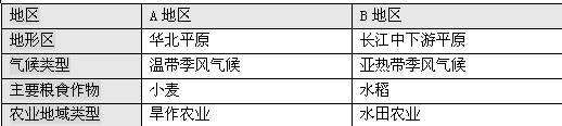 小题4:图中A、B地处江苏的南北,比较A、B两地区的地理环境特征。