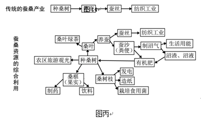 (4)根据下图(图丙)结合所学知识分析开展蚕桑资源的综合应用对蚕区农村的有利影响。(3分)