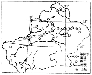 (2)图中A地年降水量比B地_____,说明造成两地降水差异的原因。(6分)